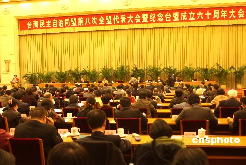 11月28日,臺灣民主自治同盟第八次全盟代表大會暨紀(jì)念臺盟成立六十周年大會在北京召開。中新社發(fā) 趙振清 攝