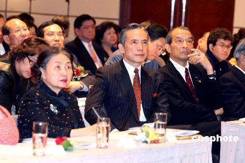 香港前律政司司長、香港基本法委員會副主任梁愛詩、海峽交流基金會前秘書長陳長文博士(右2)、亞太臺商聯(lián)合總會會長潘漢唐(左2)等與會。