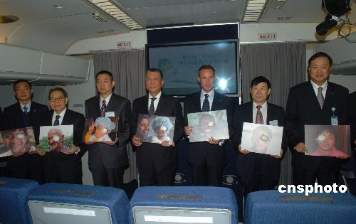 十二月五日,澳門特首何厚鏵(左四)在澳門國際機場親自主禮奧比斯眼科飛機醫(yī)院"光明之行"活動開幕典禮。肩負(fù)全球救盲使命的奧比斯眼科飛機醫(yī)院來澳,將與澳門國際機場合作開展為期三天的"光明之行"參觀活動及慈善拉飛機活動,旨在鼓勵市民關(guān)注全球失問題,喚起愛心,救助盲人。 中新社發(fā) 史利 攝