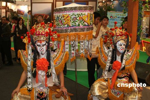 十二月十七日傍晚,“臺(tái)北國際旅展”閉幕,四天共吸引十九萬三千九百多人次入場,創(chuàng)下二十一年來新高。圖為一個(gè)攤位請(qǐng)來“八家將”助陣。中新社發(fā) 董會(huì)峰 攝