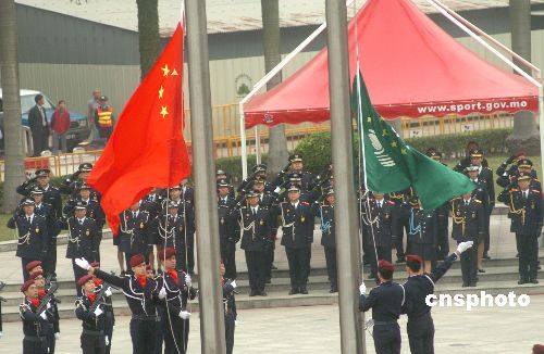 十二月二十日清晨,澳門蓮花廣場舉行隆重的升旗儀式,慶祝澳門特別行政區(qū)成立八周年。澳門特首何厚鏵、中央人民政府駐澳門聯(lián)絡(luò)辦公室主任白志健及各界人士出席升旗儀式。中新社發(fā) 史利 攝