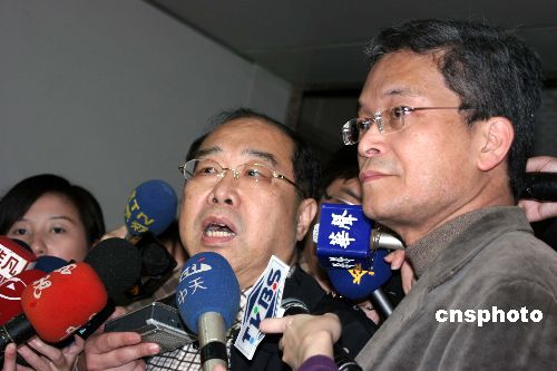 十二月二十六日,為配合臺(tái)灣當(dāng)局的一階段領(lǐng)投票規(guī)劃,“中央選舉委員會(huì)”在臺(tái)北舉行會(huì)議,以六比三通過修改各級(jí)選委會(huì)組織規(guī)程。圖為國民黨、親民黨推薦的“中選會(huì)”委員劉光華、趙叔鍵(右)接受記者采訪,反對行政干預(yù),提岀一階段、兩階段折衷方案。中新社發(fā) 董會(huì)峰 攝