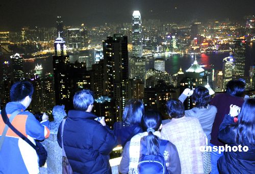 眾多游客和市民在香港太平山頂觀看璀燦夜色,等待時(shí)光邁入2008年。中新社發(fā) 王麗南 攝