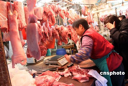 一月二十九日,香港市民在街市選購(gòu)新鮮豬肉。臨近春節(jié),各類供港食品受內(nèi)地大風(fēng)雪影響價(jià)格上漲,豬肉零售價(jià)再次飆升至每斤四十至四十四元。香港食物及衛(wèi)生局局長(zhǎng)周一岳表示,中央已采取緊急調(diào)配措施,務(wù)求把內(nèi)地大風(fēng)雪對(duì)供港食品的影響減至最低。中新社發(fā) 洪少葵 攝