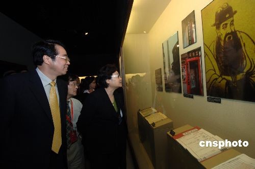 圖:中國(guó)國(guó)僑辦主任李海峰參觀閩臺(tái)緣博物館