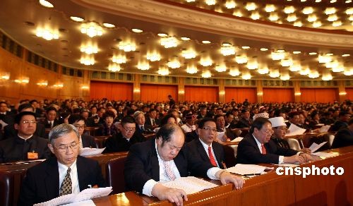 3月3日下午,全國(guó)政協(xié)十一屆一次會(huì)議在北京人民大會(huì)堂開幕,圖為來(lái)自香港特區(qū)的委員在開幕會(huì)上。中新社發(fā) 盛佳鵬 攝