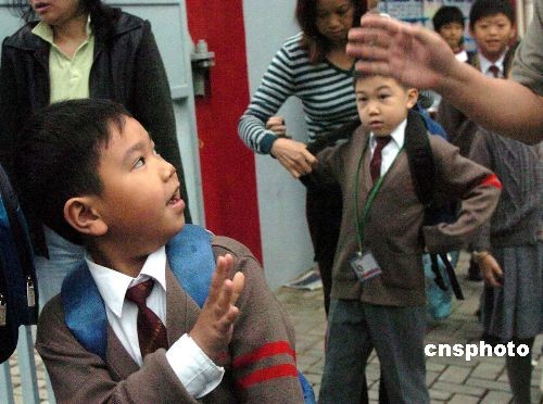 三月三十一日,早前曾有學(xué)童病逝的屯門(mén)順德聯(lián)誼總會(huì)何日東小學(xué)的學(xué)童回校上課。此前,香港全部小學(xué)、幼兒幼兒園和特殊學(xué)校停課兩周,以應(yīng)對(duì)流感。中新社發(fā) 譚達(dá)明 攝