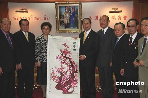 圖為李海峰代表國僑辦向泰國中華總商會贈送紀念品。