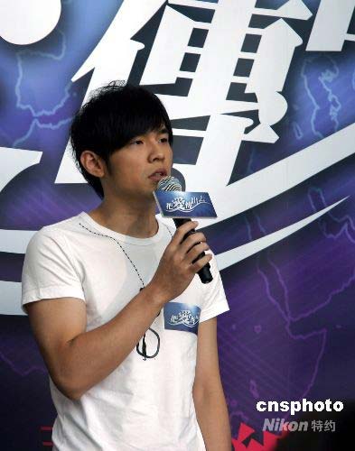 臺(tái)灣演藝界人士將于18日晚共同參與四川賑災(zāi)晚會(huì)“把愛(ài)傳出去”。張小燕、張菲、吳宗憲、蔡康永等知名藝人接到邀請(qǐng)并積極投入晚會(huì)籌備工作,圖為周杰倫號(hào)召民眾以及更多藝人參與募款活動(dòng)。中新社發(fā) 劉舒凌 攝