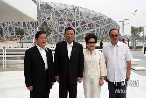 6月12日下午,海峽交流基金會(huì)董事長江丙坤參觀了北京奧運(yùn)會(huì)場館,圖為江丙坤等人在“鳥巢”前留影。中新社記者 張宇 攝