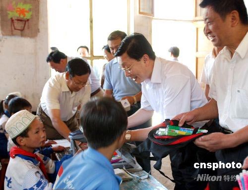 6月11日至12日,國(guó)務(wù)院僑辦副主任馬儒沛一行赴國(guó)僑辦定點(diǎn)幫扶點(diǎn)積石山縣,視察了定點(diǎn)幫扶項(xiàng)目的進(jìn)展情況,并看望了積石山縣的部分貧困農(nóng)戶和小學(xué)生。13日,馬儒沛向甘肅省政府轉(zhuǎn)交海外僑胞的捐款1000萬(wàn)元人民幣。中新社發(fā) 牛建業(yè) 攝