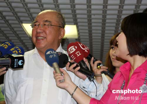 7月26日,中國國民黨主席吳伯雄在臺(tái)北參與國民黨中常委選舉投票后接受記者采訪,笑著重申將應(yīng)邀參加北京奧運(yùn)會(huì)。中新社發(fā) 董會(huì)峰 攝