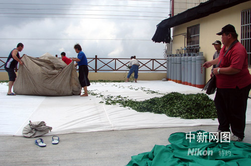 九月十二日“森拉克”臺風(fēng)即將來臨,臺灣阿里山上的茶農(nóng)搶時間晾曬高山茶。曾福志 攝