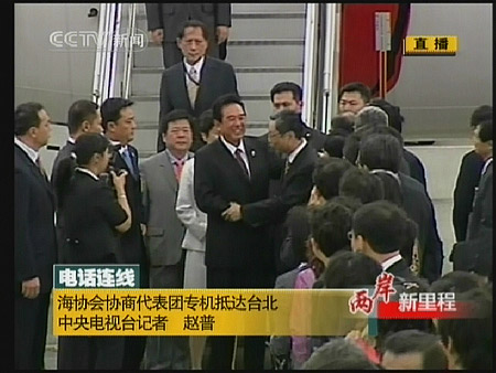 海峽兩岸關(guān)系協(xié)會(huì)會(huì)長(zhǎng)陳云林率海協(xié)會(huì)協(xié)商代表團(tuán),3日上午11時(shí)46分許乘國(guó)航包機(jī)抵達(dá)桃園機(jī)場(chǎng),展開(kāi)在臺(tái)灣的歷史性訪問(wèn)行程。