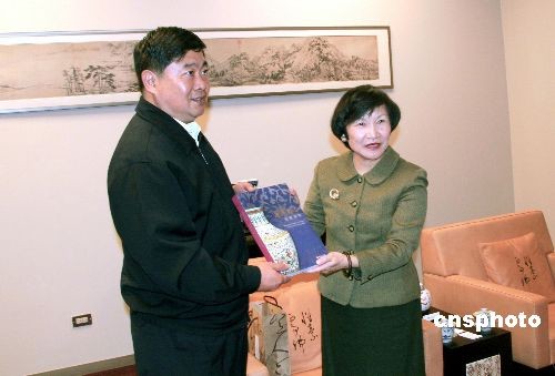 11月24日,國家文物局局長、中華文物交流協(xié)會(huì)會(huì)長單霽翔(左)率大陸多位文物界人士,參訪臺(tái)北故宮博物院,并與臺(tái)北故宮博物院院長周功鑫互贈(zèng)禮物。中新社發(fā) 周兆軍 攝