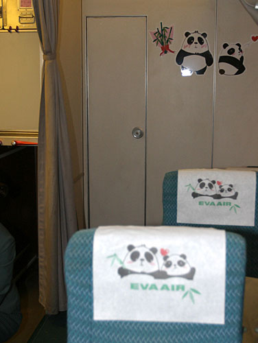 長榮航空22日派出波音客貨機準備接回大陸贈送的2只大熊貓,飼養(yǎng)員可以經(jīng)由照片中的小門,由客艙進入貨艙了解熊貓在運送途中的情況。(“中央社”圖)