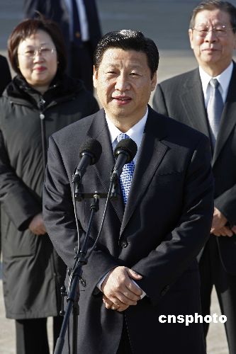 1月10日上午,國家副主席習(xí)近平抵達(dá)澳門拱北口岸,開始對澳門考察訪問。在拱北口岸,習(xí)近平發(fā)表講話,為澳門同胞齊心協(xié)力應(yīng)對國際金融危機鼓勁加油。中新社發(fā) 盛佳鵬 攝