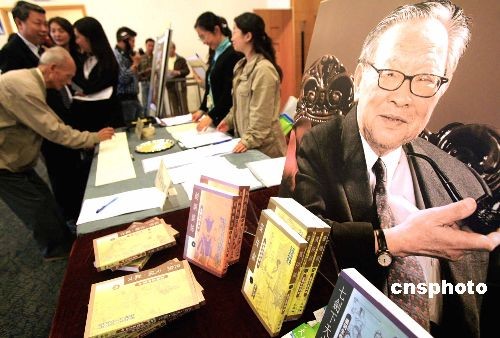 二月十六日,為緬懷上月底病逝的武俠小說宗師梁羽生,香港《大公報》和天地圖書在香港中央圖書館舉辦座談會。著名武俠小說作家金庸、武俠小說研究專家兼教授鄺健行、電影導(dǎo)演張鑫炎、對聯(lián)專家楊瑞生,天地圖書副總編輯孫立川等就梁羽生在當代文學、詩詞、楹聯(lián)等方面的造詣和成就以及生平逸事趣聞,與其著作愛好者和公眾座談分享。圖為展出的梁羽生部分作品。中新社發(fā) 張勤 攝