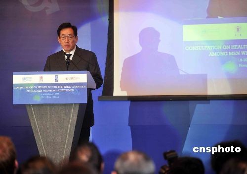 二月十八日,世界衛(wèi)生組織在香港召開會議,討論西太平洋區(qū)的艾滋病情況。世衛(wèi)估計(jì),區(qū)內(nèi)有一千萬名男同性戀者,都屬艾滋病高危族群。香港食物及衛(wèi)生局局長周一岳出席會議并致辭。中新社發(fā) 譚達(dá)明 攝