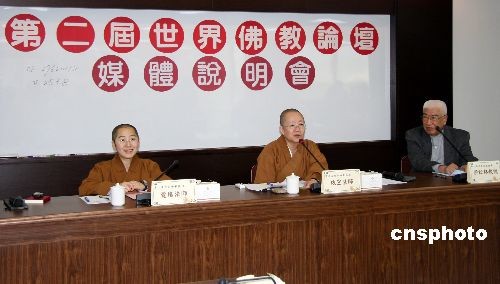 3月2日,臺灣佛光山國際佛光會在臺北舉行媒體說明會,宣布第二屆世界佛教論壇自3月30日開始從大陸移師臺北,論壇的閉幕式將于4月1日在臺北巨蛋體育館舉行。據(jù)悉,由中國佛教協(xié)會、臺灣佛光山國際佛光會、香港佛教聯(lián)合會和中華宗教文化交流協(xié)會共同主辦的第二屆世界佛教論壇將于3月28日在無錫市開幕,4月1日在臺北閉幕。圖為佛光山國際佛光會發(fā)言人、第二屆世界佛教論壇臺灣部分的發(fā)言人依空法師(中)在記者會上介紹論壇臺灣部分籌備情況。中新社發(fā) 陳立宇 攝