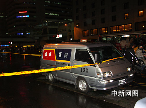 3月6日下午,臺北市南京東路三段國泰世華銀行復興分行前發(fā)生銀行搶劫案,一名歹徒在連開6槍,擊傷1名運鈔車保全人員后,劫走兩袋共新臺幣278萬元的現鈔逃逸。傍晚時分,警方已在案發(fā)現場附近拉起封鎖線。圖為仍停在現場封鎖線內的保全公司運鈔車。中新社記者 陳立宇 攝