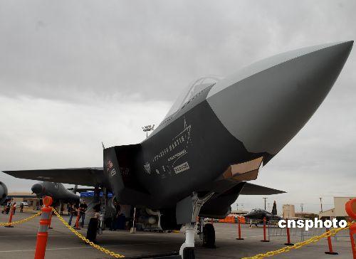 美國十一月中旬在內華達州內利斯空軍基地舉行紀念空軍成立六十年大規(guī)模飛機展示中,未來主力戰(zhàn)機F-35“閃電2聯(lián)合攻擊戰(zhàn)斗機”的公開亮相最為矚目。這種多國合作研制的新一代隱秘戰(zhàn)術飛機,將更新裝備美國空軍、海軍和海軍陸戰(zhàn)隊,以及英國皇家海軍與皇家空軍等多國部隊。中新社發(fā) 賈國榮 攝