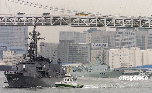 11月28日,中國海軍“深圳”號(舷號167)導(dǎo)彈驅(qū)逐艦在日本海上自衛(wèi)隊“雷”號護(hù)衛(wèi)艦的引導(dǎo)下如期抵達(dá)東京晴海碼頭,開始對日為期四天的友好訪問。這是中國海軍軍艦第一次訪問日本。中新社發(fā) 朱沿華 攝