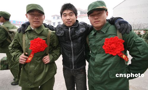 12月11日下午,家住安徽蒙城縣漆園辦事處城北村的雙胞胎兄弟鄭根林、鄭隨林同時(shí)參軍,起程開赴各自部隊(duì)開始多彩的軍營生活。鄭家兄弟自幼羨慕軍營生活,今年冬季征兵開始后,兄弟倆一起報(bào)名參加體檢和政審,并雙雙通過,被解放軍某部和武警某部批準(zhǔn)入伍,雙胞胎兄弟同時(shí)參軍入伍在當(dāng)?shù)貍鳛榧言挕V行律绨l(fā) 胡衛(wèi)國 攝