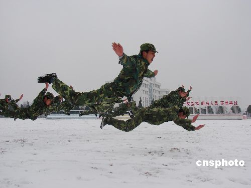 1月16日,濟(jì)南空軍某飛行學(xué)院某部警通連官兵結(jié)合軍事訓(xùn)練開展文體活動。時值“三九”寒天,江淮大地普降大雪,而濟(jì)南空軍某飛行學(xué)院訓(xùn)練場上的官兵們斗志昂揚(yáng)。中新社發(fā) 耿國慶 攝