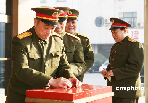 2月4日上午,山東省軍區(qū)機(jī)關(guān)為南方雪災(zāi)地區(qū)群眾獻(xiàn)愛心捐助儀式在濟(jì)南舉行。省軍區(qū)司令員談文虎、政委張秉德等領(lǐng)導(dǎo)出席捐助儀式并帶頭捐款。中新社發(fā) 盧軍 攝