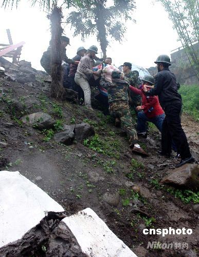 圖:四川某預(yù)備役高炮師災(zāi)區(qū)搶救重傷人員