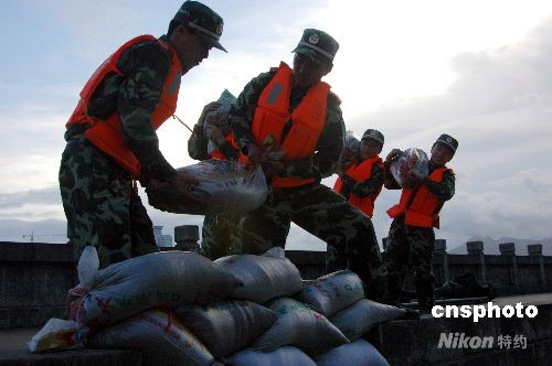圖:溫州軍民加固堤壩迎戰(zhàn)“森拉克”