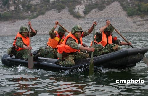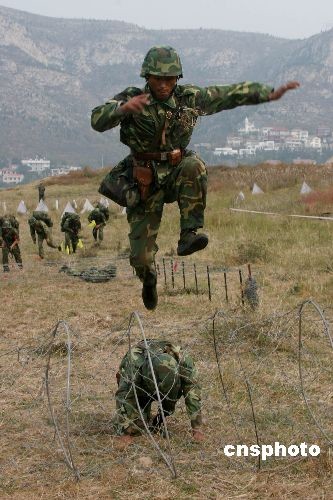 10月18日,濟(jì)南軍區(qū)偵察兵動態(tài)比武展開。滿臉油彩的偵察隊(duì)員們身負(fù)35公斤戰(zhàn)斗裝具行軍50公里,主要進(jìn)行了夜間行軍、操舟越障、通過雷場、偵察報知、調(diào)制要圖、山地攀登六項(xiàng)課目考核。中新社發(fā) 崔成俊 攝