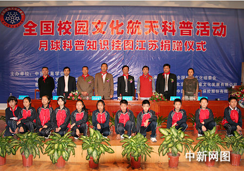 10月底,“嫦娥一號(hào)”探月衛(wèi)星將發(fā)射升空。為了迎接“嫦娥一號(hào)”的發(fā)射,10月15日,在江蘇省昆山市,中國人民財(cái)產(chǎn)保險(xiǎn)股份有限公司向江蘇省中小學(xué)生捐贈(zèng)了月球科普掛圖2000套。這套掛圖是目前國內(nèi)首次以生動(dòng)、活潑的卡通形象“航天娃娃”向中小學(xué)生介紹月球地貌、月球資源、月球開發(fā)、月球基地建設(shè)等月球科普知識(shí)。據(jù)了解,這次捐贈(zèng)的主要目的是把太空和月球知識(shí)送到中小學(xué)生中,以激發(fā)他們對航天知識(shí)的興趣,提高他們的科學(xué)素養(yǎng),培養(yǎng)開拓創(chuàng)新和刻苦鉆研的科學(xué)精神。劉明明 攝