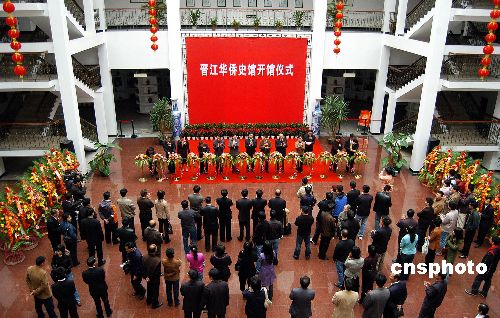 十二月五日,閩南“晉江華僑史館”在福建晉江博物館隆重開館。華僑史館共分為《海天萬里故園情—晉江華僑華人歷史展》和《晉臺緣港澳情—晉江港澳臺同胞展》兩個(gè)永久性展覽,展覽面積一千八百平方米,充分展示晉江先人飄洋過海,闖蕩打拼的奮斗歷程和積淀下來的拼搏文化,激勵更多的后人樹立和發(fā)揚(yáng)愛拼敢贏的晉江精神。中新社發(fā) 傅丹丹 攝