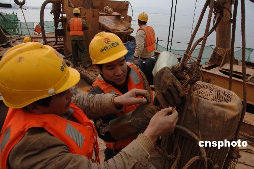 2月10日,福(州)廈(門)高速鐵路疑難項(xiàng)目之一----福州烏龍江特大橋工程獲得突破性進(jìn)展。工程采用“水中錨碇系統(tǒng)輔助的板凳結(jié)構(gòu)平臺(tái)”施工方法,轉(zhuǎn)入水面承臺(tái)施工,解決了水下施工難題。該橋全長(zhǎng)868.178米,處于烏龍江河床最窄處,水深浪急雙向潮差達(dá)5米左右,地質(zhì)為傾斜光板巖,是福建省橋梁建設(shè)史上技術(shù)難度最高的項(xiàng)目。中新社發(fā) 鄭祚聲 攝