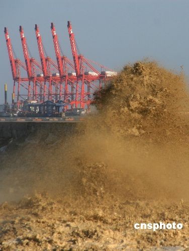 2月17日,在連云港西大堤內側,海底淤泥在巨大的壓力下噴涌而出。連云港港口在碼頭建設中使用先進的“吹填造陸”技術,把疏浚航道挖出的淤泥強力吹填到圍堤中,經過沉積后形成陸地,再建設碼頭。