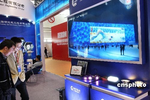 4月4日,2008年奧運(yùn)場館“水立方”幔態(tài)顯示系統(tǒng)亮相北京第九屆國際照明電器博覽會(huì)現(xiàn)場受關(guān)注。由中國照明學(xué)會(huì)中國照明電器協(xié)會(huì)、北京中貿(mào)聯(lián)國際展覽有限公司共同舉辦的2008中國(北京)第九屆國際照明電器博覽會(huì)在北京舉行。 作者: 鄭雄增