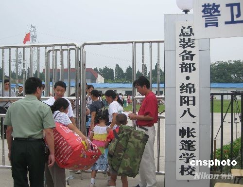 8月20日,在汶川大地震中受損嚴重的四川省綿陽市1000余所中小學全部開學,其中板房學校有612所。圖為北川學生進入由總裝備部出資修建的綿陽八一帳蓬學校。據(jù)介紹,該學校將接納北川羌族自治縣曲山小學和劉漢希望小學的九百余名學生。中新社發(fā) 霍潺 攝
