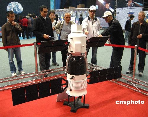 10月20日,嫦娥探月工程暨神舟七號科普展在北京航空航天大學(xué)舉行。參觀者可以體驗(yàn)穿著高仿真的宇航服拍照,同時(shí)還可觀看神七返回艙模型、嫦娥一號衛(wèi)星模型,月球稱等展品。展覽集合了探月工程和神七載人航天工程的部分實(shí)物和大量模型圖片等,吸引了眾多京城市民前來觀看。 中新社發(fā) 玉龍 攝