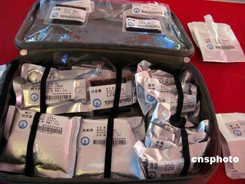 2008年11月19日消息,在北京軍博舉辦的《飛天壯歌——神舟七號(hào)載人航天飛行紀(jì)實(shí)攝影展覽》上,展出了由中國(guó)航天食品研發(fā)中心航天食品研究室研制的神舟七號(hào)載人航天飛行員使用的航天食品。中新社發(fā) 鄒憲 攝