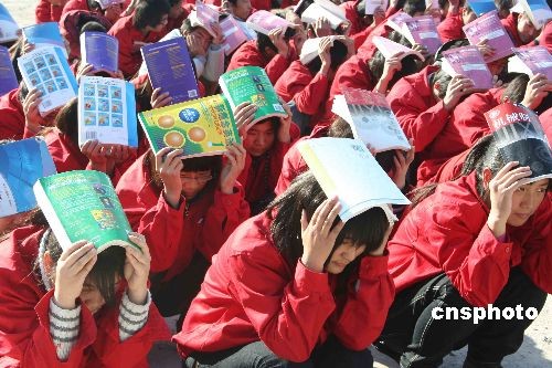 11月25日上午11時,位于河北邢臺的中國二十冶技校舉行一次應對地震、火災等突發(fā)事件的“逃生”演習。在短短的1分鐘內(nèi),該校300余名師生順利“逃生”。中新社發(fā) 陳雷 攝