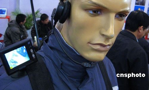 12月9日,2008年中國國際社會公共安全產(chǎn)品博覽會在北京中國國際展覽中心開幕。圖為來自臺灣的利凌(LILIN)公司,展示無線單兵(紅外感應攝影機)音視頻監(jiān)控指揮系統(tǒng)和視頻服務器等技術(shù)系統(tǒng)。該機可以通過無線基站,將前方圖像傳遞到2000米范圍內(nèi)的后方終端系統(tǒng)。中新社發(fā) 鄒憲 攝