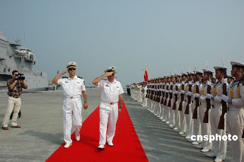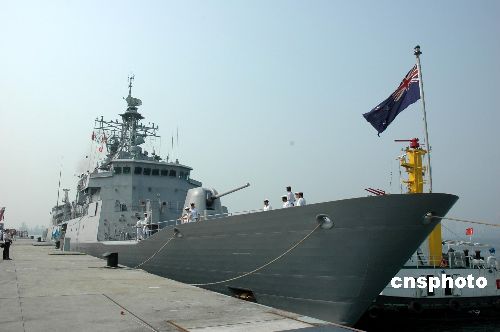10月19日上午10時(shí),新西蘭海軍“特卡哈”(Te Kaha)號(hào)護(hù)衛(wèi)艦(舷號(hào)F77)在新西蘭海上聯(lián)合作戰(zhàn)部隊(duì)司令大衛(wèi)·安森(David Anson)準(zhǔn)將的率領(lǐng)下,駛抵中國(guó)海軍湛江軍港,開(kāi)始對(duì)南海艦隊(duì)進(jìn)行為期3天的友好交流。中方南海艦隊(duì)副參謀長(zhǎng)么志樓少將在碼頭舉行儀式,歡迎新艦首次訪問(wèn)湛江。中新社發(fā) 李根成 攝