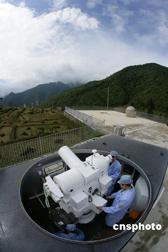 10月22日,西昌衛(wèi)星發(fā)射中心技術(shù)人員調(diào)試跟蹤火箭前期軌道的光學(xué)經(jīng)緯儀。中國國防科工委當(dāng)晚在北京宣布,“嫦娥一號”衛(wèi)星將于24日至26日在西昌衛(wèi)星發(fā)射中心擇機(jī)發(fā)射,首選發(fā)射窗口為24日18時左右。中新社發(fā) 秦憲安 攝