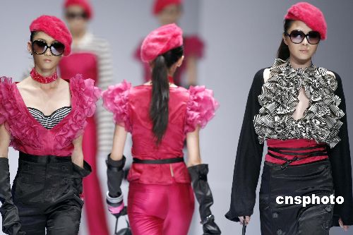十一月五日,在2007年中國(guó)國(guó)際時(shí)裝周舞臺(tái)上,北服—萊佛士國(guó)際學(xué)院畢業(yè)作品展示會(huì)將學(xué)生們的設(shè)計(jì)理念展現(xiàn)在T型臺(tái)上,為觀眾獻(xiàn)上一場(chǎng)視覺(jué)大餐。中新社發(fā) 盛佳鵬 攝