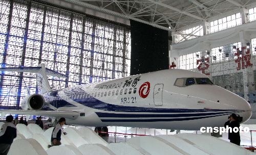 十二月二十一日下午,由中國航空工業(yè)第一集團公司(中國一航)自行研制生產(chǎn)的中國首架自主知識產(chǎn)權(quán)噴氣支線客機ARJ21-700飛機,其中文名為“翔鳳”,寓意矯健飛翔之鳳,在上海飛機制造廠順利實現(xiàn)總裝下線。此舉表明,中國在民用飛機科研和制造領(lǐng)域取得突破性進展,中國自主研制的先進噴氣支線客機已成為世界民用客機大家庭的新成員。中新社發(fā) 孫自法 攝