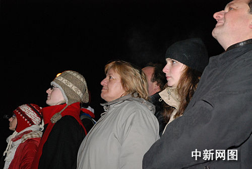 捷克民眾在米庫洛夫申根慶典上觀看焰火時神情肅穆。