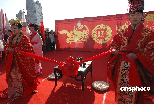 圖:浙江一婚慶公司把傳統(tǒng)婚俗“搬”到廣場(chǎng)