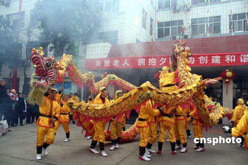 武漢福利院老人們“家”門口看舞龍